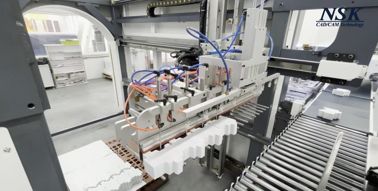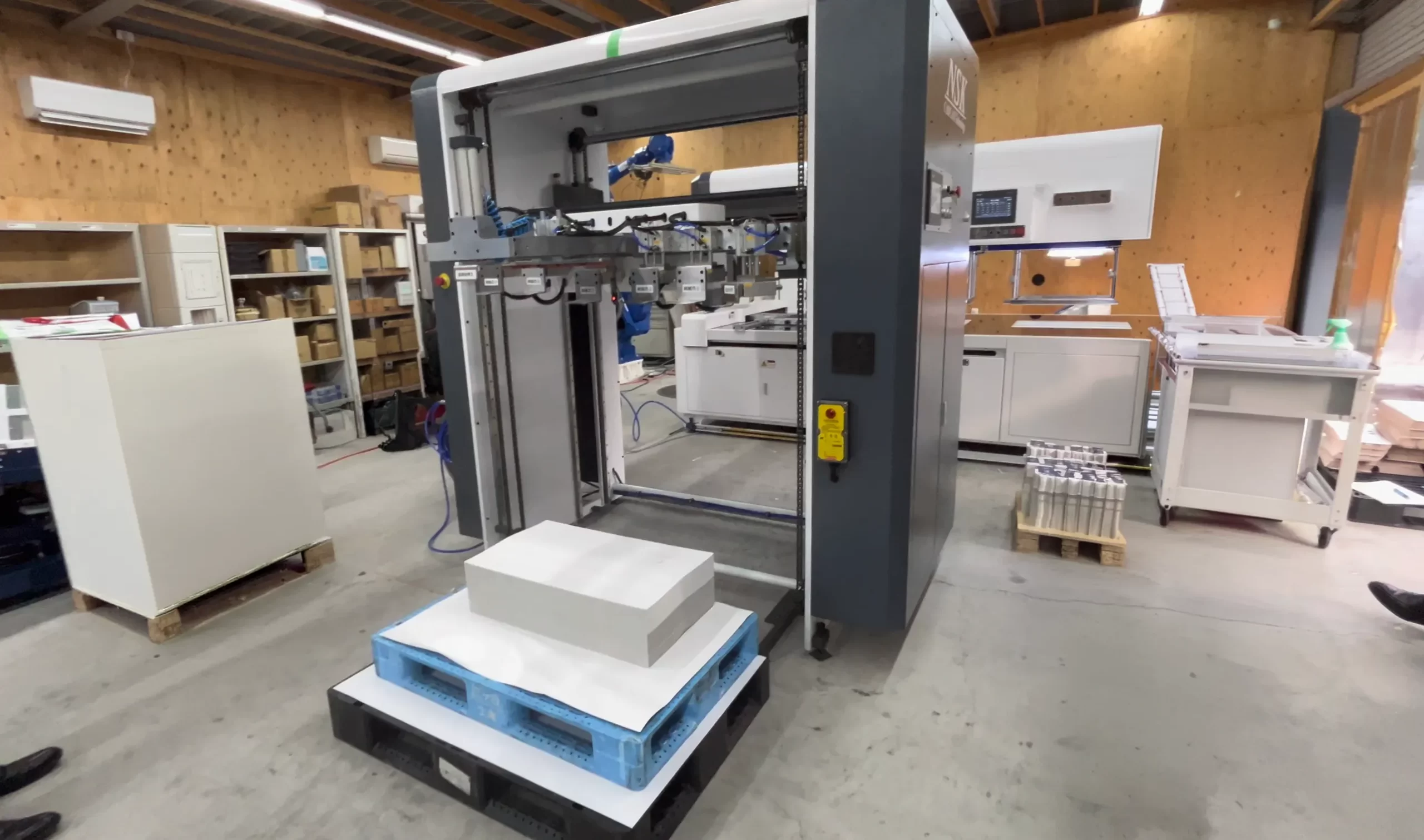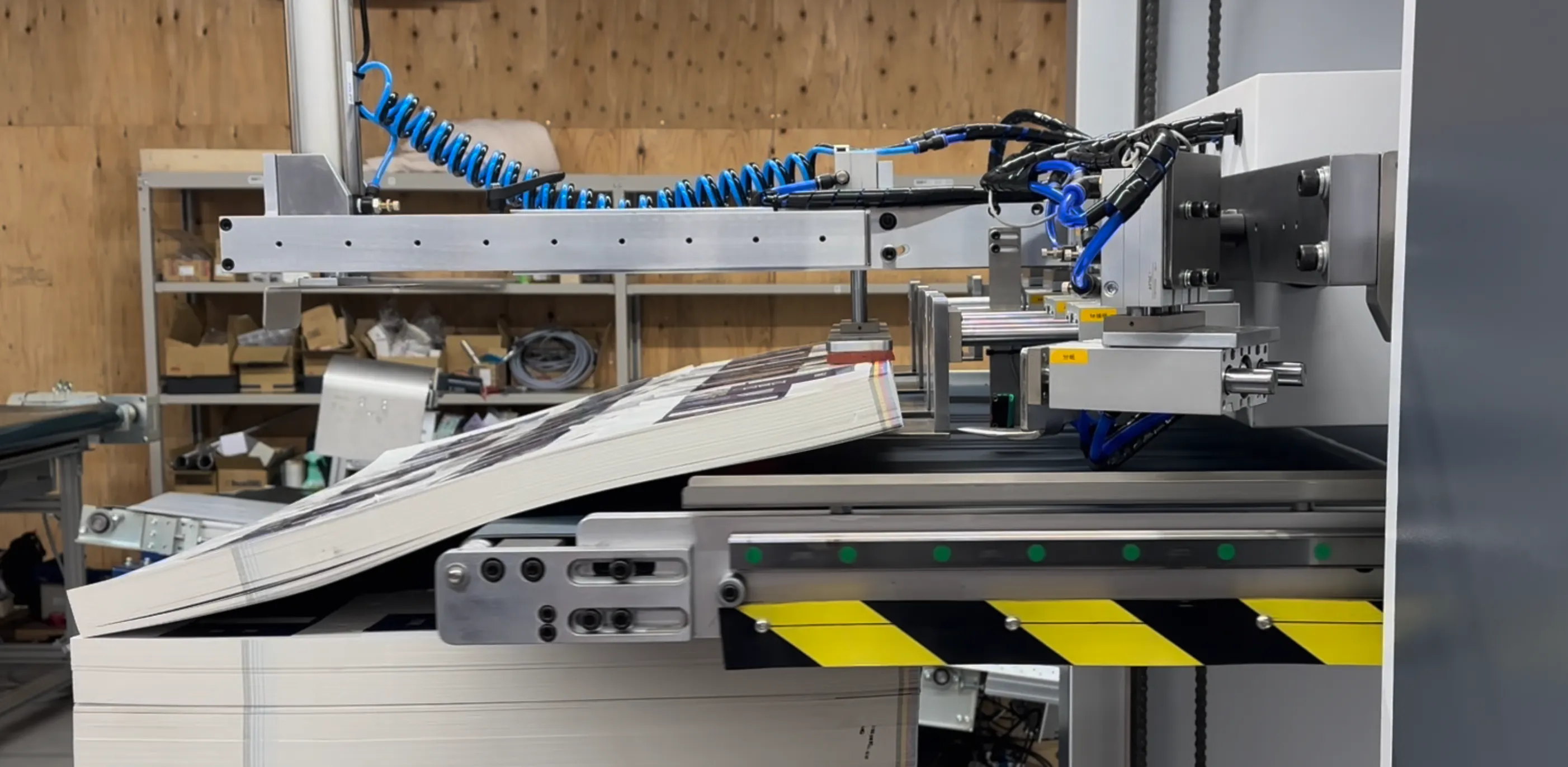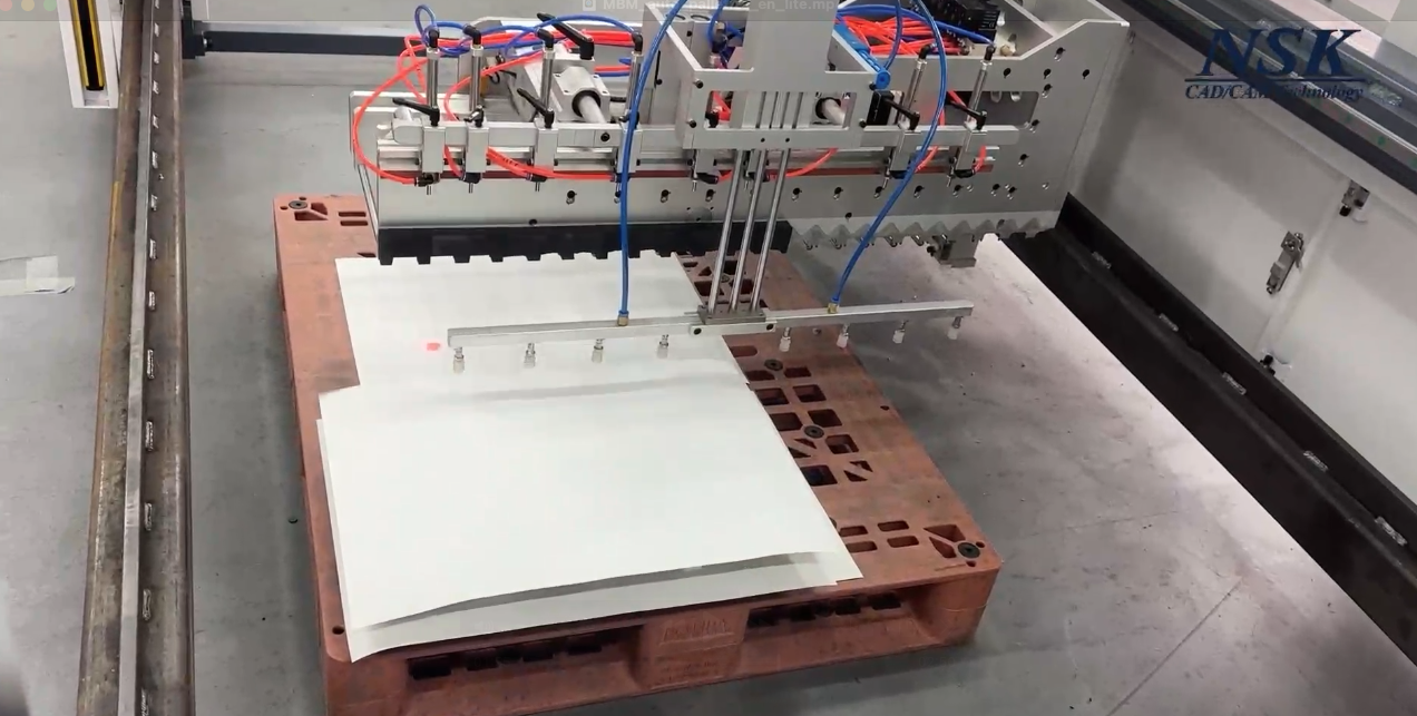 When a full row of blanks is formed in the layout, they will be palletized together and stacked onto the pallet by the robotic arm.